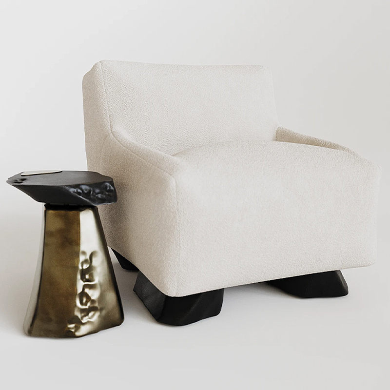 Кресло Cannes с мягкой обивкой букле молочного цвета