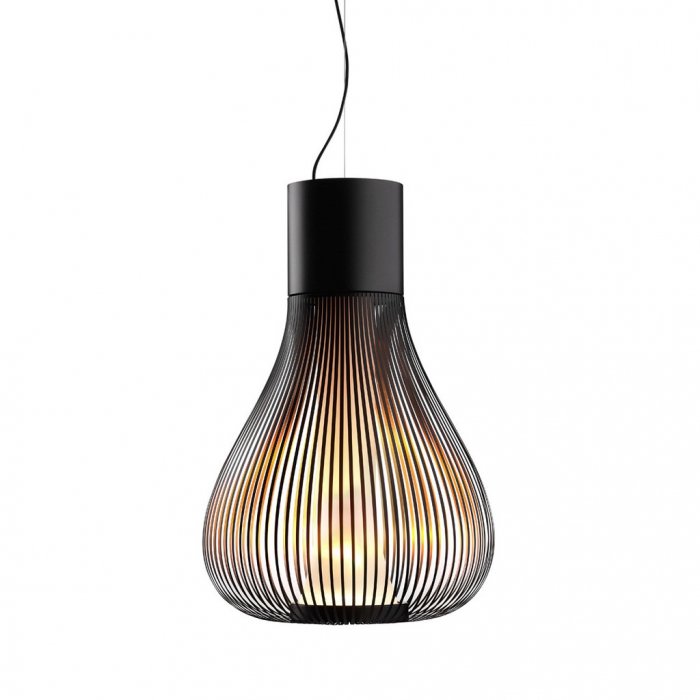 Оригинальная люстра, разработанная в 2007 году, предназначена для больших интерьеров, подчеркнет значимость помещения и его размеры. Идеально подходит для комнат с высокими потолками, визуально еще больше расширяя параметры в целом. Абажур выполнен из металла, благодаря чему свет падает не прямо, а рассеивается, создавая интересное, даже можно сказать, игривое освещение. Шнур регулируется, что позволяет слегка видоизменять интерьер помещения в целом, так как многие элементы дизайна зависят именно от освещения.