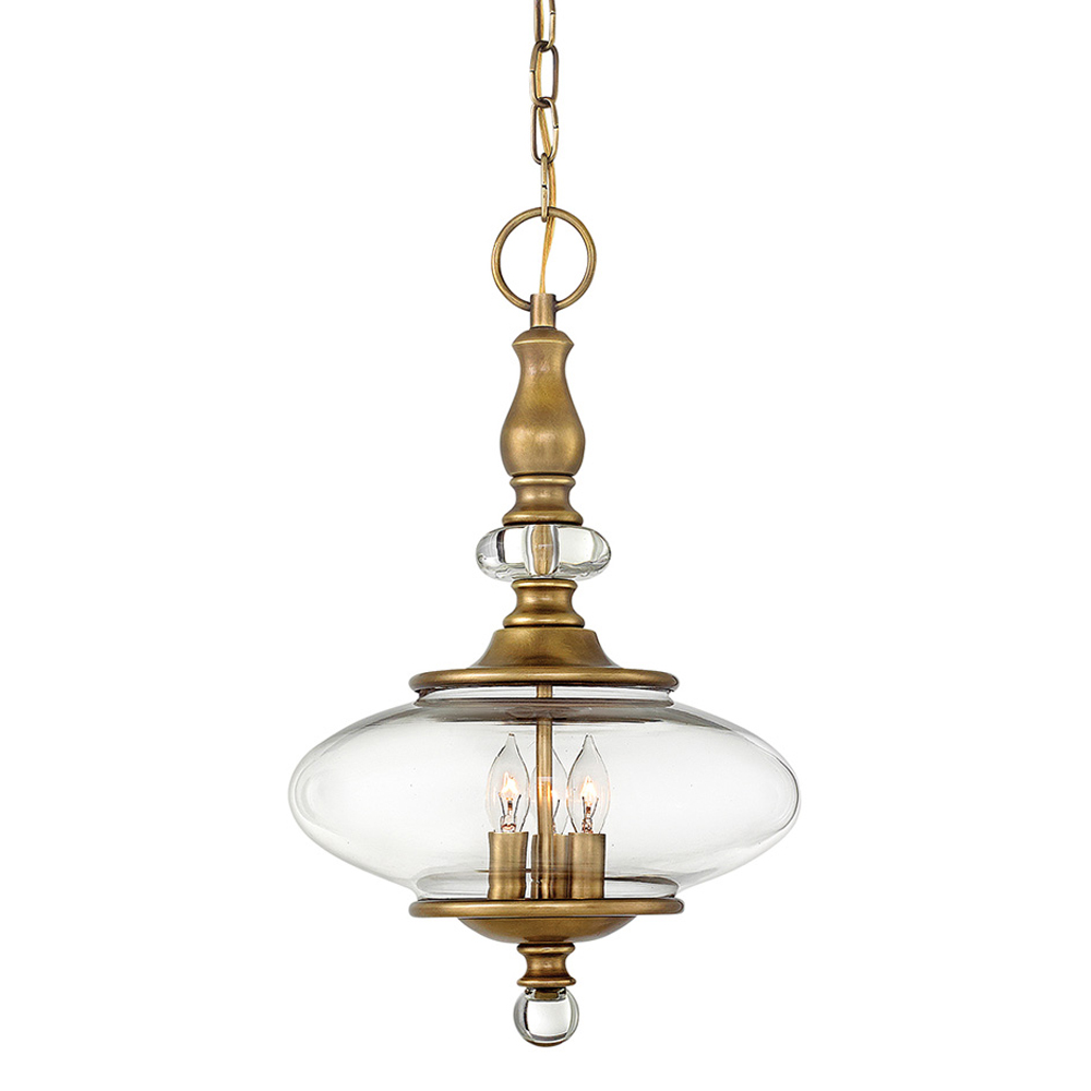 Люстра подвесная цвета латунь с прозрачным овальным стеклянным плафоном Hinkley