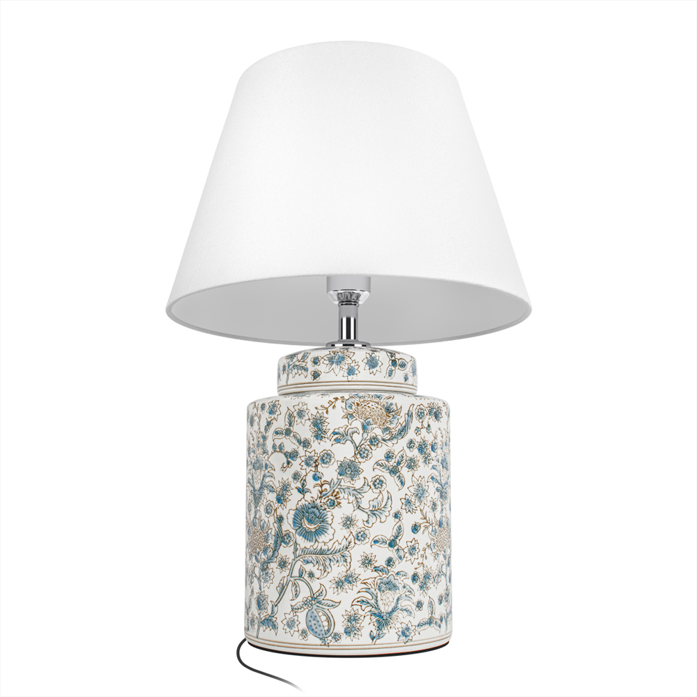 Настольная лампа цилиндрическая с цветочной росписью Lamp Flower Painting Белый Синий в Костроме | Loft Concept