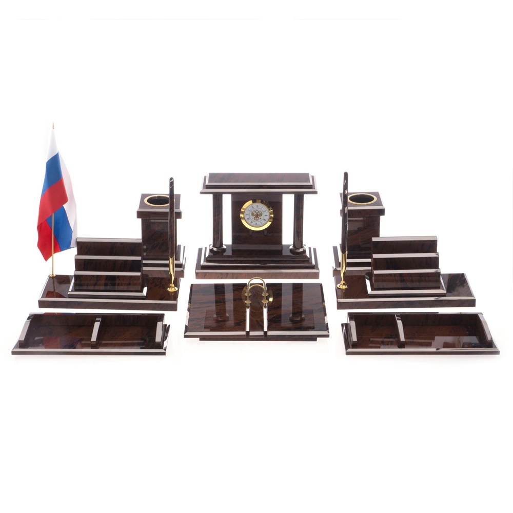 Настольный письменный набор из природного камня обсидиана Team leader Коричневый Бронза в Костроме | Loft Concept