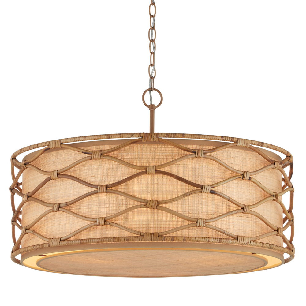 Подвесной светильник  из кованого железа и абажуром из ротанга Wicker Furniture Светло-коричневый  Бежевый в Костроме | Loft Concept