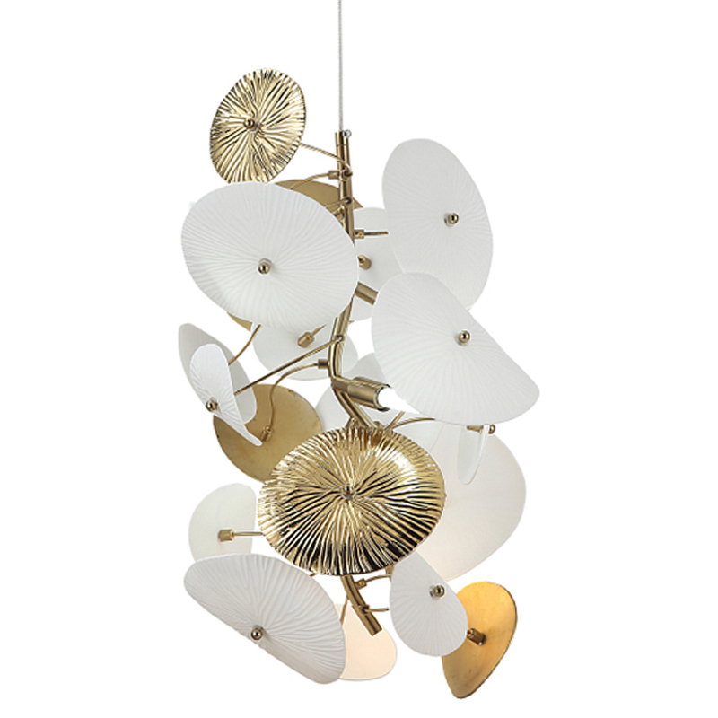 Подвесной светильник с белыми и золотистыми цветами Dahlia Flowers Lamp Латунь Белый в Костроме | Loft Concept
