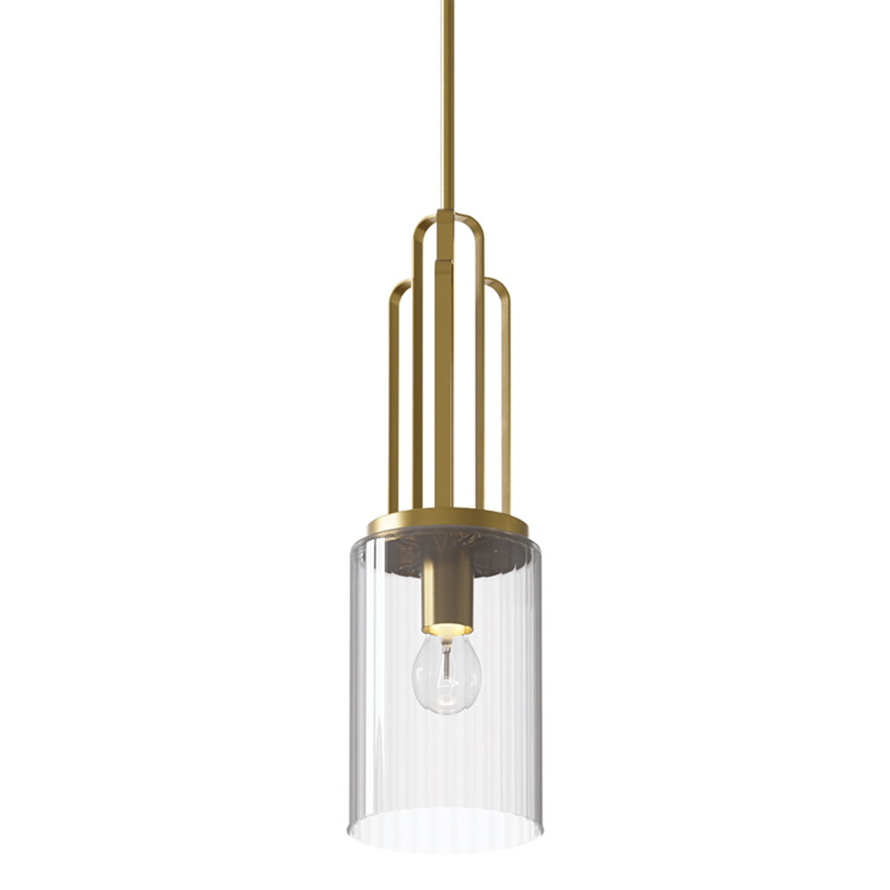 Подвесной светильник Elstead Lighting QN-KIMROSE-MP-BNB. Шедевр в стиле ар-деко. Плафон изготовлен из прозрачного рифленого стекла с вертикальными желобками для мягкого эффекта игры света. Для обычного освещения без эффектов просто снимите плафон. Основание выполнено в отделке - Матовая латунь, Полированный никель. Можно использовать при освещении гостинной, кабинета, кухни, прихожей, спальни, столовой. Поставляется в комплекте со стержнями 1х152 мм и 3х305 мм