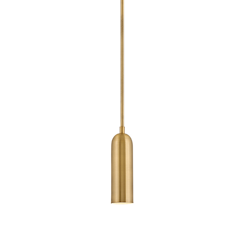 Подвесной светильник цвета матовая латунь с узким цилиндрическим плафоном Hinkley